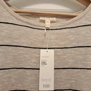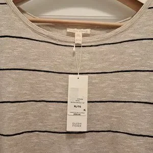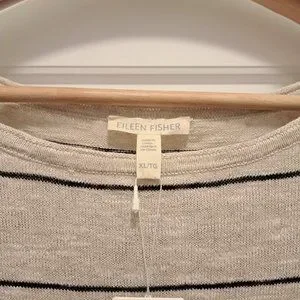 Eileen Fisher Striped Bateau Neck Hi-Low Top, Size XL , New with tag