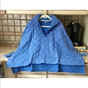 Free People Shiloh Quilted Sweatshirt Pullover Zip Swing Hi Lo Blue