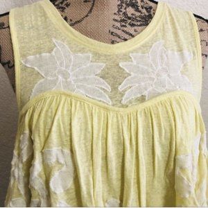 Free People women's cute yellow summer cold shoulder crop top with white lace flower detail. Size: XS