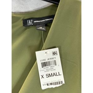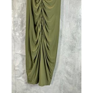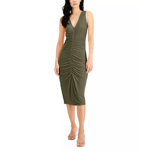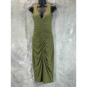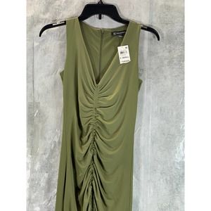 INC International Concepts Women's Burnt Olive V-Neck Ruched Sleeveless Bodycon Midi Dress SZ XS