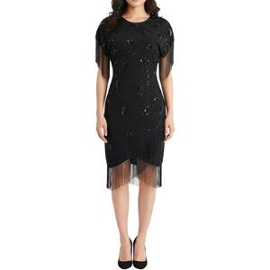 Beaded fringe on hemline and sleeves