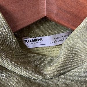 One sleeve shimmery, lime green dress by Pull&Bear. please note small tear on neckline. It is not noticeable when, wearing in my opinion, price will reflect.
