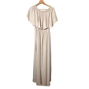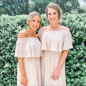The Hacienda Maxi's versatile ruffle top has an elastic neckline to wear off the shoulder, strapless, and one shoulder.