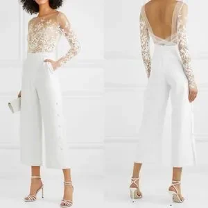 I purchased this jumpsuit from another Poshmark seller for my wedding rehearsal but went with another look. This is a beautiful and delicate jumpsuit — missing one cuff button.