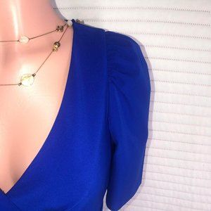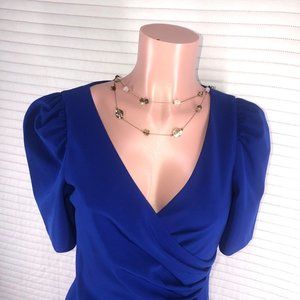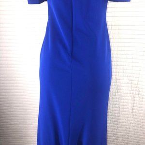 👗Adriana Papell Womens Blues zippered pouf V Neck Maxi Formal Sheath dress 🌷