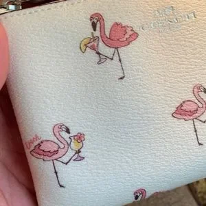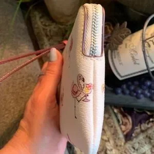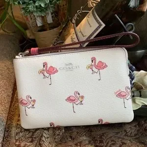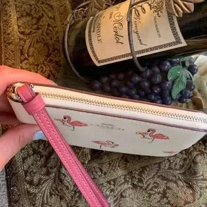 Authentic COACH Coated canvas /Smooth leather FLAMINGO top zip wristlet