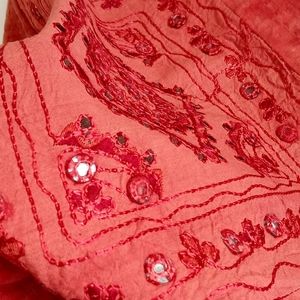 Vintage Antique Muted Orange Velvet and Cotton Patchwork Pillow Sham from India