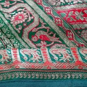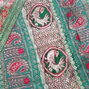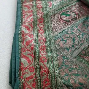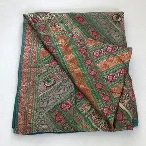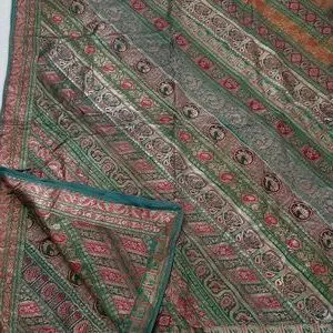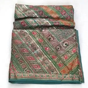 Unique Gorgeous Silk Green Patchwork Batik Bedspread / Tapestry from India