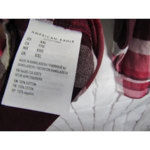 American Eagle Men's Burgundy Plaid Button Front XXL Shirt