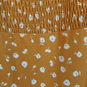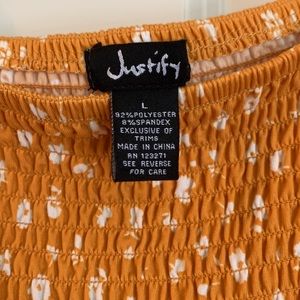 Justify yellow summer dress, size large (Juniors - could work for an adult too, but would be closer to a S/M in adult sizing), very cute detailing. Elastic neckline which I believe could be worn as traditional sleeves or a slight off the shoulder look. Also has elastic bust and top so it stretchy. Armpit to armpit is 14 inches. Waist also 14 inches, but will stretch, length approx 36 inches. NWOT, never worn.
