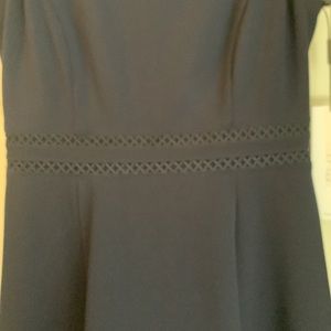 Calvin Klein, a-line dress, navy, size 2. NWT, eyelet detail around the waist and bottom edge. As you can see from the pics, the waist is not see through, but the bottom edge is see through as a more traditional eyelet detail. Zippered back. Great dress for a wedding, or to wear to work. Very versatile. Armpit to armpit is 14.75. Length is 35.5 inches to the top of the eyelet hem and 38 inches total.