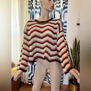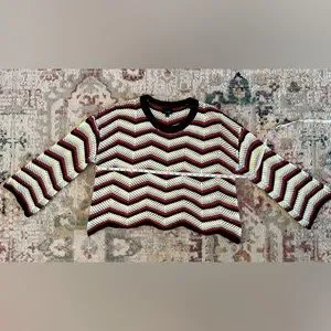 Lumiere Crochet Bell Sleeve Cropped Sweater Size L