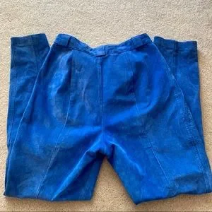 Vintage royal blue suede pants. Reposting because they are now too big on me. Never worn. True size 8.