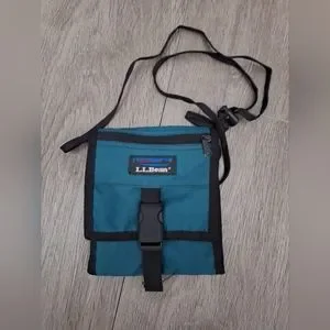 L L Bean vintage small crossbody-wallet passport/money holder. Can be used for anything. can be looped on a belt. It's approximately 18 inches long unfolded and 6 inches deep. All zippers work as they should. This is in excellent condition. Smoke free home.