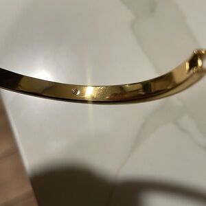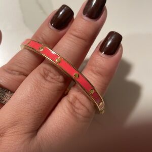 KATE SPADE SPOT THE SPADE GOLD AND CORAL ENAMEL HINGED BRACELET.