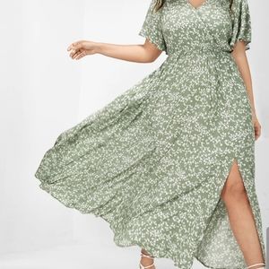 Bloom Flutter Sleeve Ditsy Floral Pocket Split Maxi Dress Size