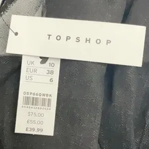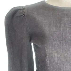TOPSHOP SEAMED DENIM IN WASHED BLACK ROUND NECK PUFF SHOULDER | SIZE UK10 NWT
