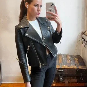 Cropped motorcycle jacket with contrasting hardware & zip details in a structured, slightly textured leather.
