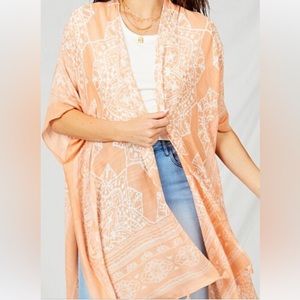 Alter’d State Kimono Coverup in Peach and White Paisley Design. New!