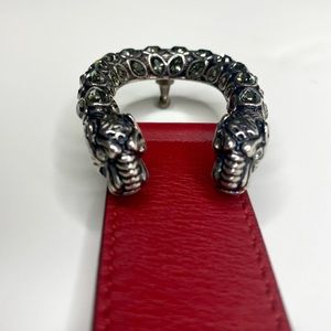 Iconic Dionysus Leather Belt Tiger head buckle encrusted with crystals.
