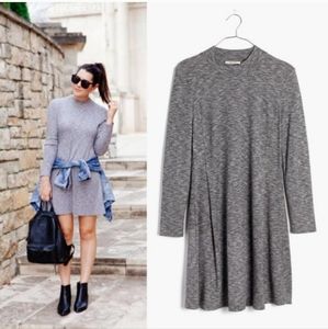 Madewell City Block Mock Neck Long Sleeve Marled Knit Dress Grey F6711