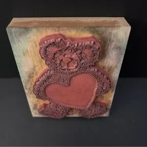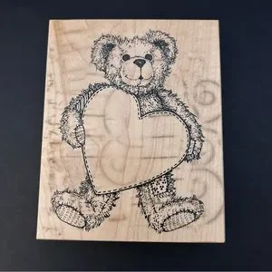 Vintage 1995 Teddy Bear with Huge Heart Rubber stamp