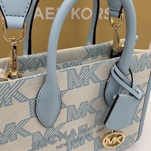 MICHAEL KORS MIRELLA SMALL SHOPPER TOP ZIP XBODY VISTA BLUE COLOR