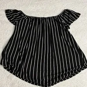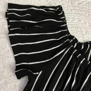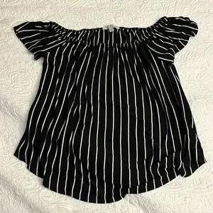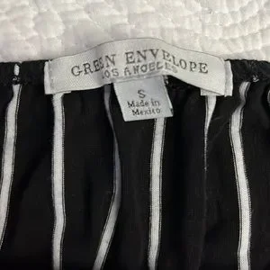 Green envelope Los Angeles women’s short sleeve shirt black with white stripes