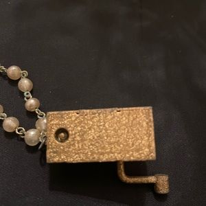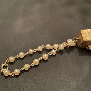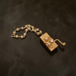 Vtg Swiss Music Box Charm bracelet with faux rhinestones and a faux Pearl wrist attachment. Music box works