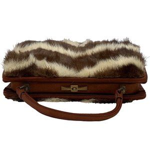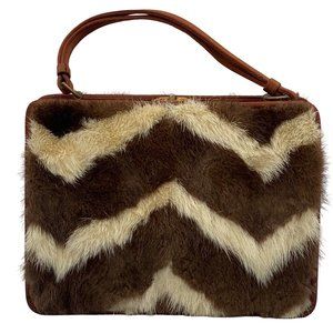 Vtg NETTIE ROSENSTEIN Mink Fur Silk Animal Print Handbag Purse 1950s
