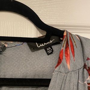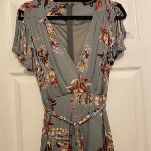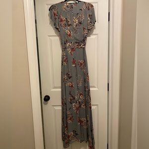 Lulus. Maxi Dress. Size XS. Grey Floral. Wrap Type Dress. V neck short sleeve