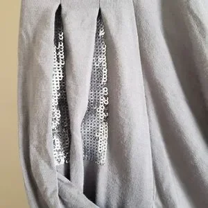 Bebe gray boatneck drop long too with silver sequins In shoulders - M
