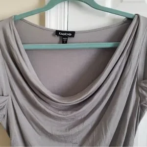 Bebe gray top can be shoulders off or on Goes great with a pair or jeans or spandex. Very comfortable, worn once.