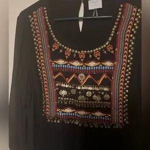 Anthropologie HD in Paris Ari peasant boho embellished blouse gauzy light 10