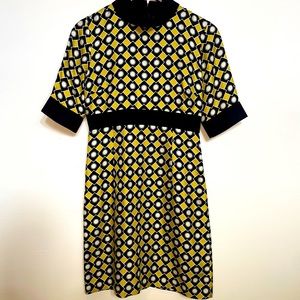 Beautiful silk dress in a cool mid mod funky print. Excellent preowned condition. I have included two photos of a different style of dress in the same print from Milly, since I cannot find any other photos of this style anywhere.