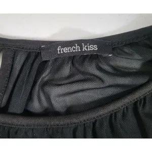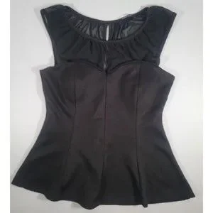 French Kiss Black Peplum Corset Women's Top Size Small Sheer Mesh Open Back