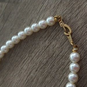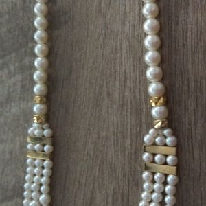 Vintage Pearl Beaded Triple Stranded Gold Necklace