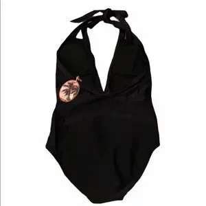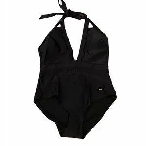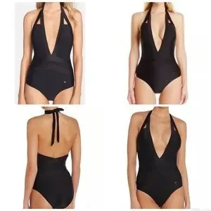 Ted Baker London Black Ralinda Low Cut Halter Swim Bathing Suit Womens 5 12 NWT