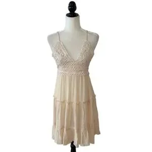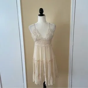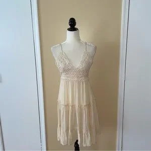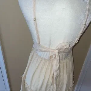 Beige Backless Mini Dress / fits a medium/ sheer perfect for summer and could be used a beach coverup