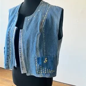 Two-tone crap denim vest