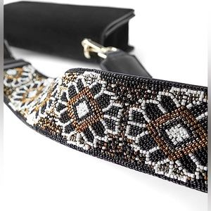 Zara split suede crossbody bag with beaded strap. Two detachable shoulder straps, front flap with magnetic clasp closure.