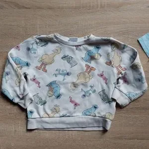 3)5t cream Sesame Street character pjs. I know, Snuffeleupagus is excluded which is totally unacceptable. Top is in guc due to loose/threading soon to be a hole? It looks in between so I called in guc. This can be seen in photo #11 (I put all the "defects" together bc of photo space).