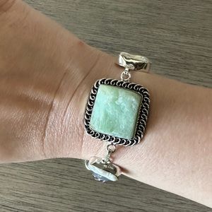0298 Chrysoprase Biwa Pearl Bracelet Handmade Silver Gemstone Jewelry