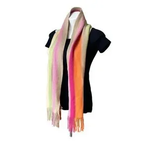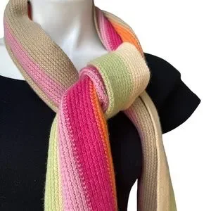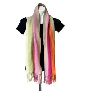 NWT, Talbots Wool Blend Ribbed Knit Multicolor Fringe Scarf