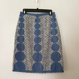 Boden A-Line Blue & Floral Print Cotton Skirt Size US 6L/UK 10L