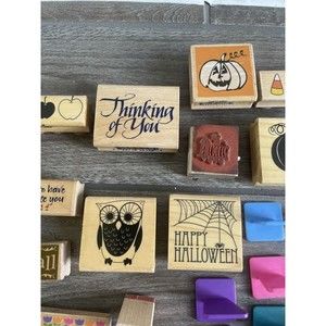 Lot Of 35 Random Mixed Lot Stamps Rubber Wooden Mounted Halloween Holidays.