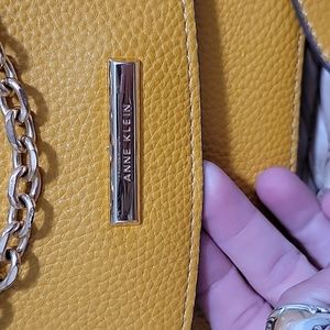 Anne Klein Hamdbag. mustard yellow. small bag with shoulder strap and hand strap