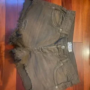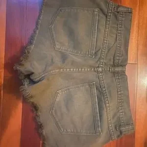 EUC, Free People Shark Bite denim shorts. Olive colored, cover shot to show fit/style. Photos show actual color. I’m so bummed that they don’t fit. ISO a 24/25.