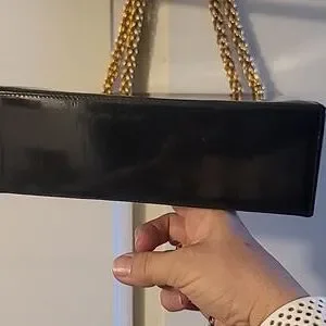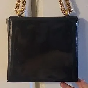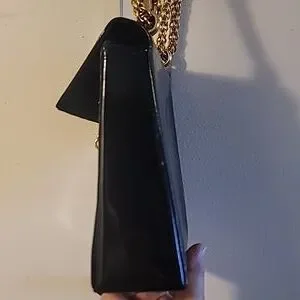 Black patent with gorgeous gold heavy chain and hardware.