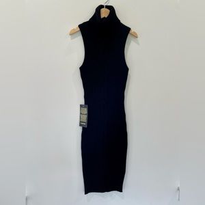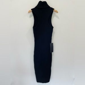 Totally hot for cooler weather, this knit midi dress clings to every curve in a sleek rib-knit design. Features chic cable detail, a cowl neck, and a sleek racerback. No closures. Viscose blend.